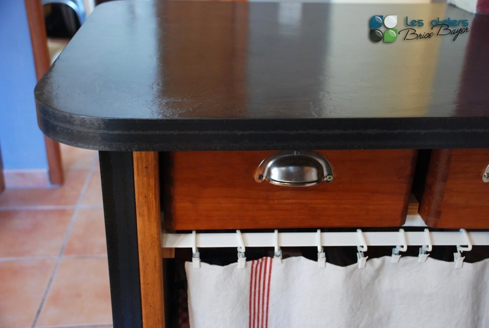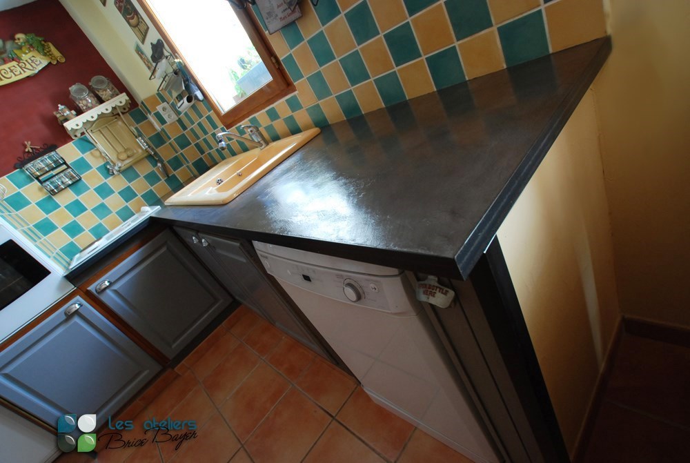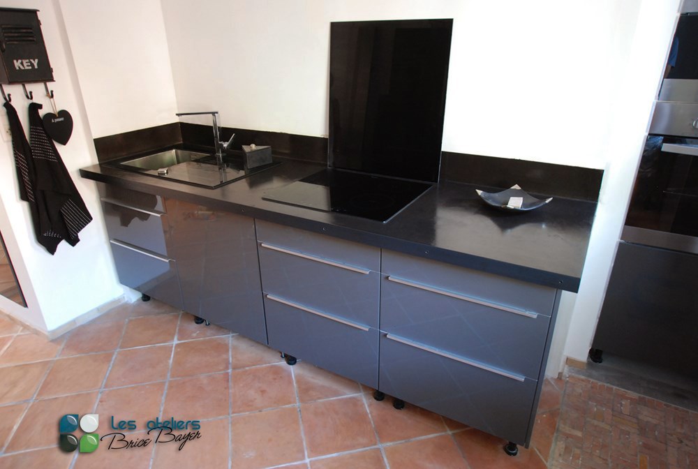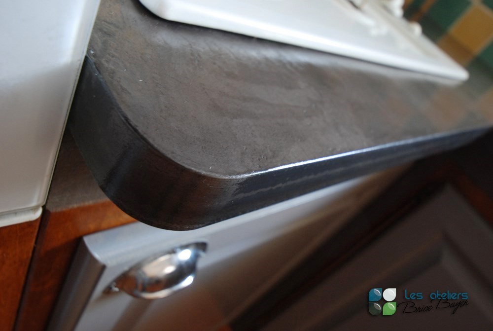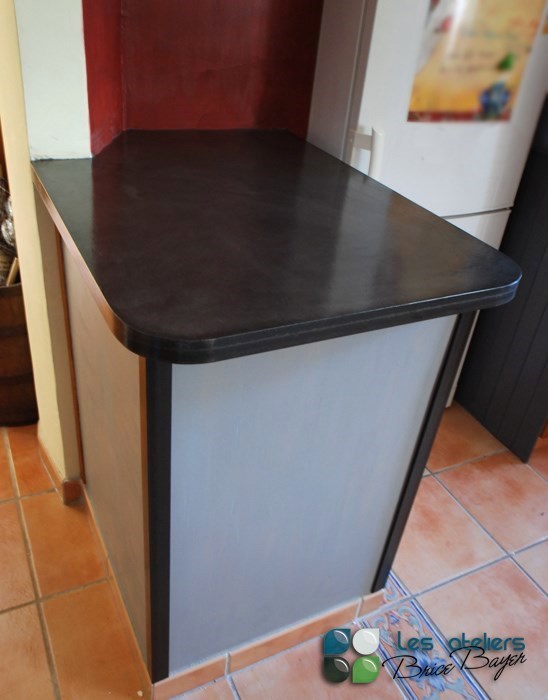 Description : Rénovation d'un plan de travail de cuisine en le recouvrant de béton ciré noir