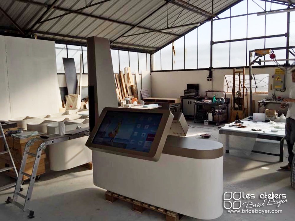 Conception de l’ensemble des plans d’ingénieuries du projet. Réalisation @ateliersbricebayer des gabarits pour le serrurier & plasticien. Réalisation du moule, du prototype et des huit pièces.