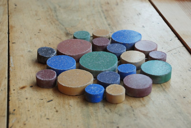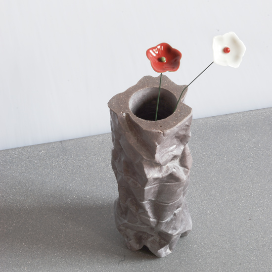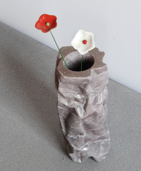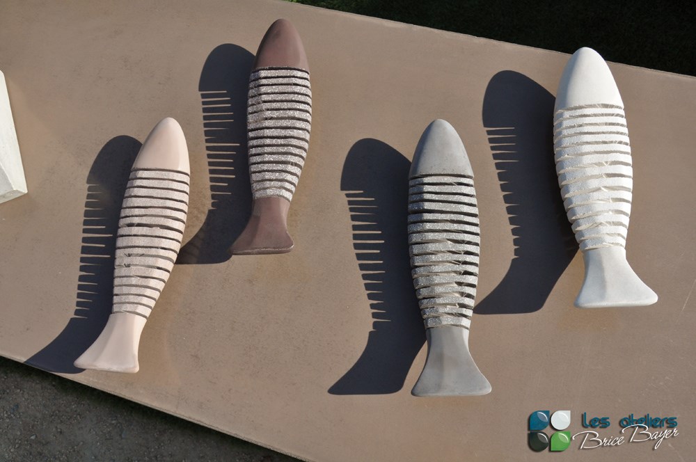 La minéralité du béton et ses multiples propriétés ( solidité, résistance, bonne étanchéité...) se sont imposées rapidement. Les différentes colorations en fonction des ajouts successifs de pigments m'ont permis de proposer des vases selon une large palette de couleur.