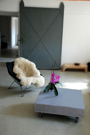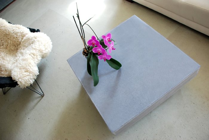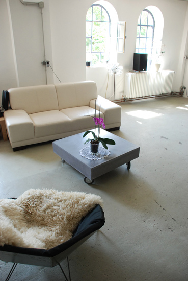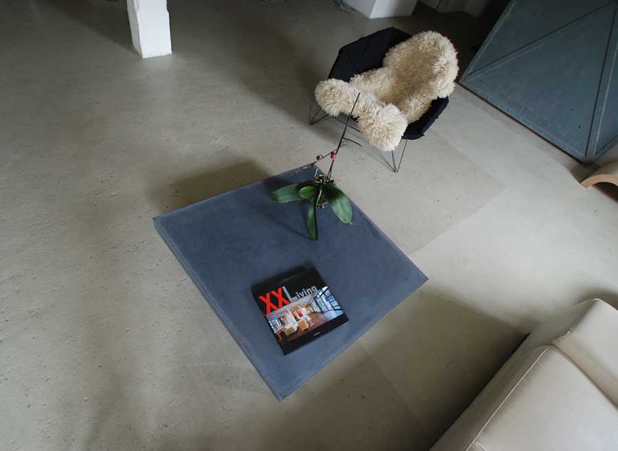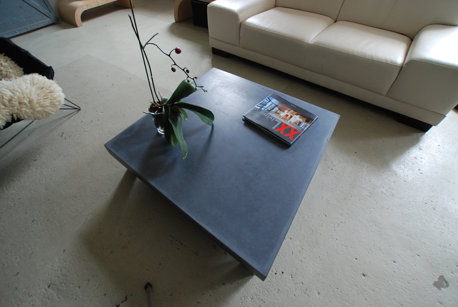 Description : La table alkaline est une table basse en béton haute performance et au piètement encaier laqué noir, esprit industriel.