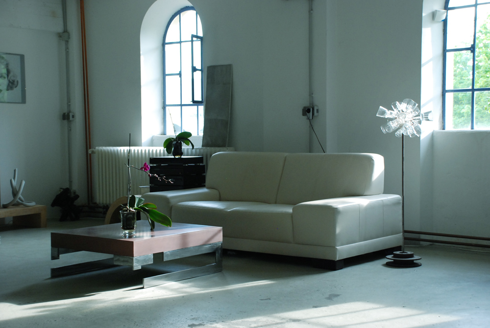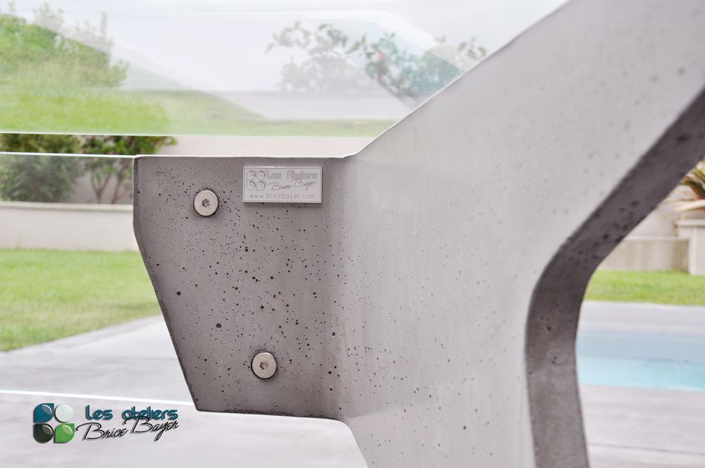 Le plateau en béton haute performance de moins de vingt cinq millimètres en se détachant des quatre pieds massifs se présente à l'aplomb des éléments porteurs.