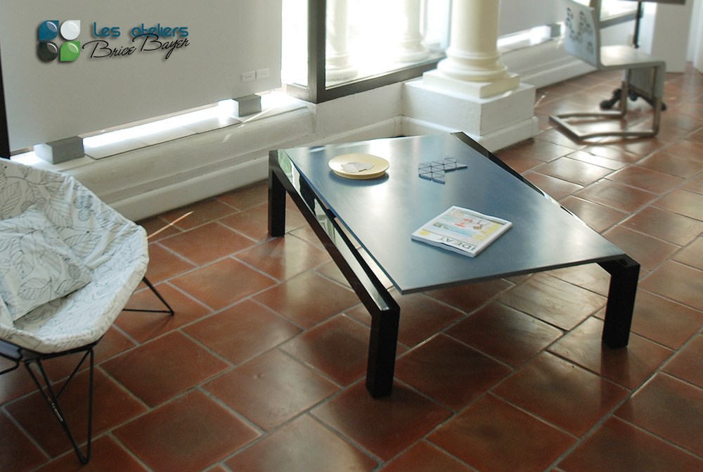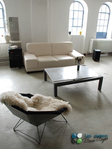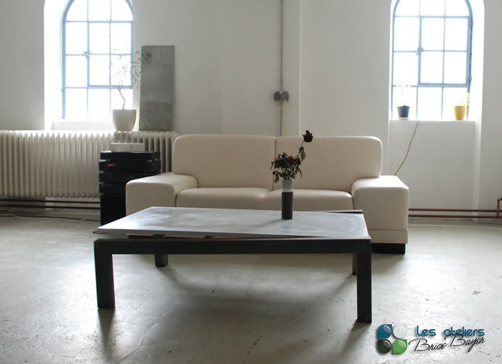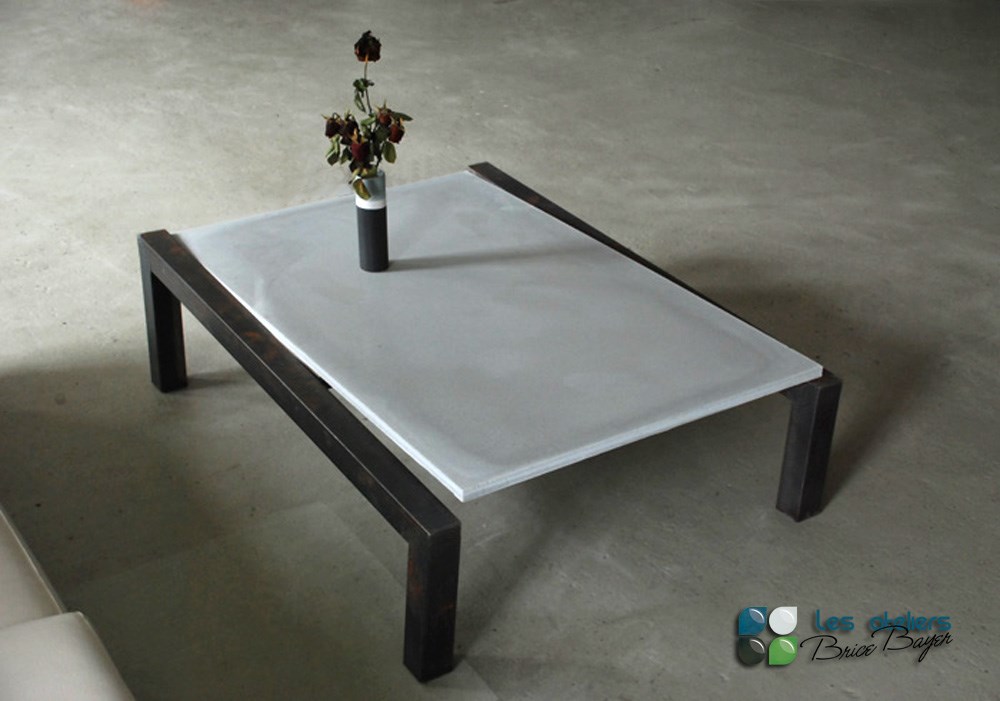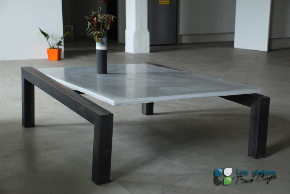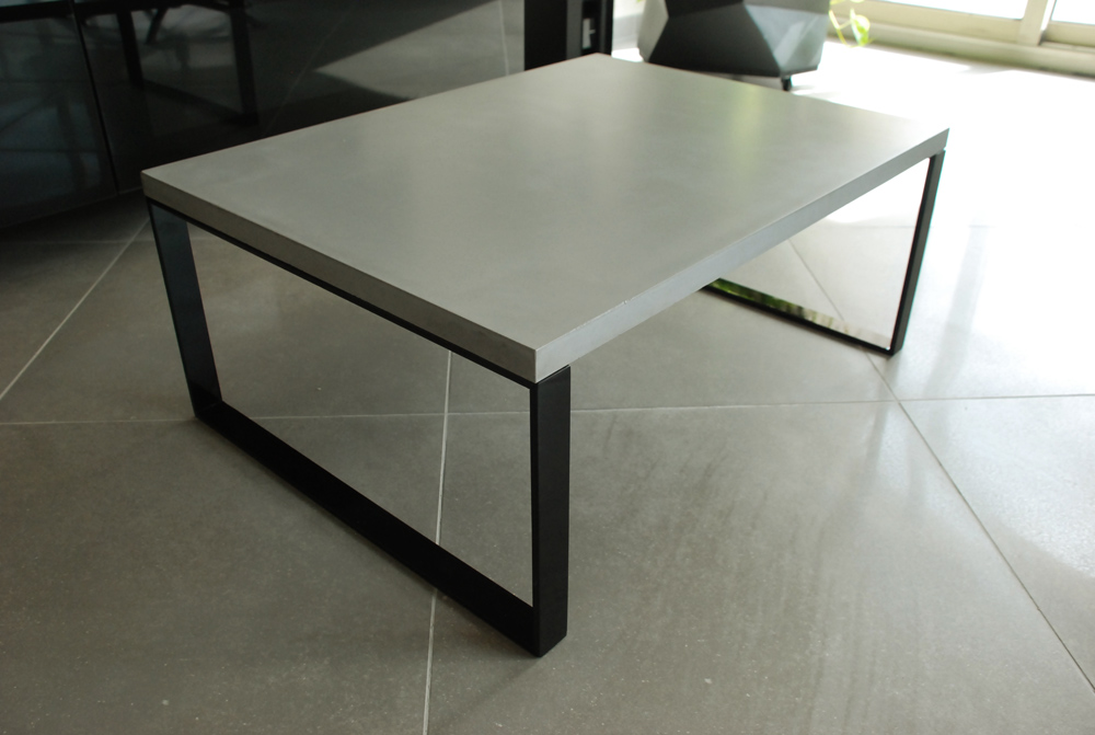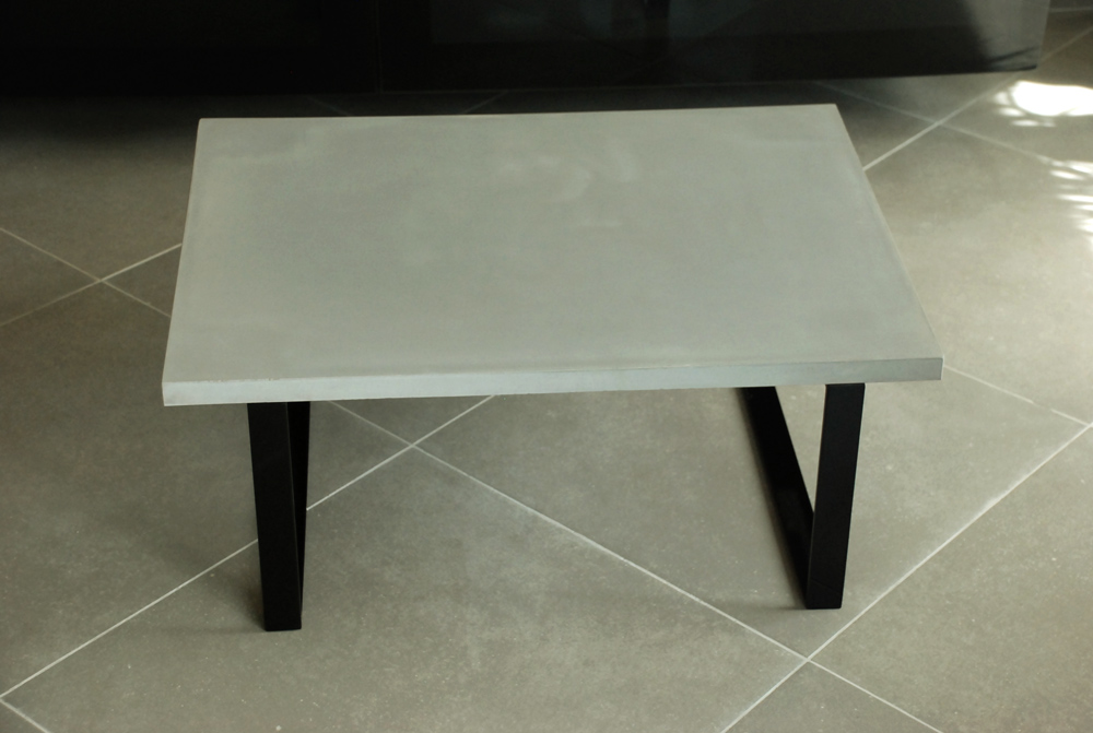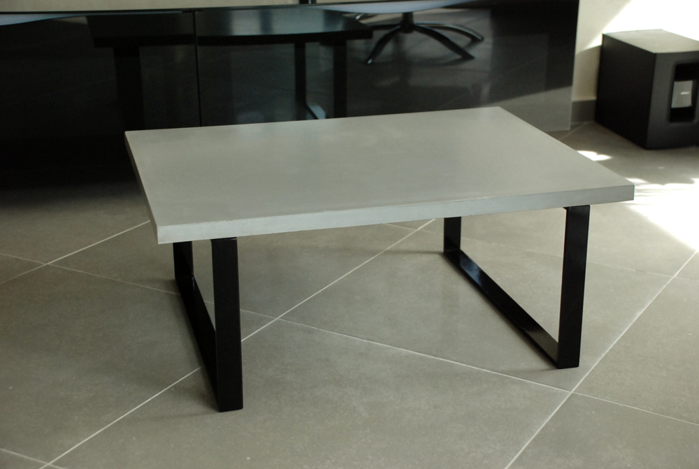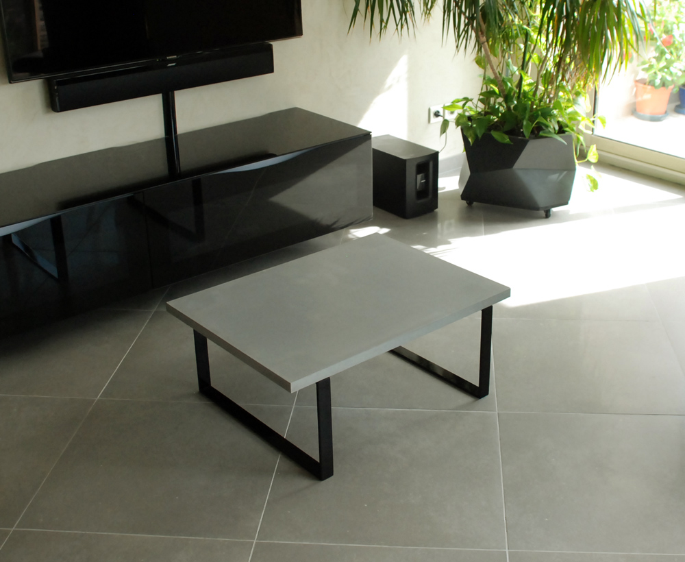 Déscription : Table basse plateau en béton haute performance et piètement en acier, esprit industriel
