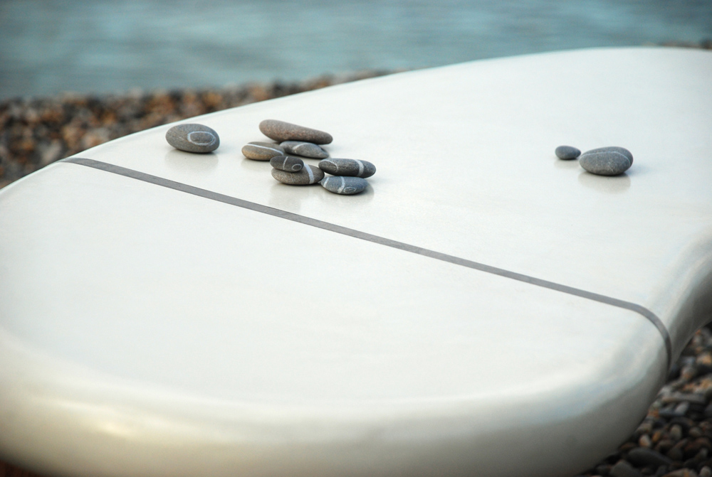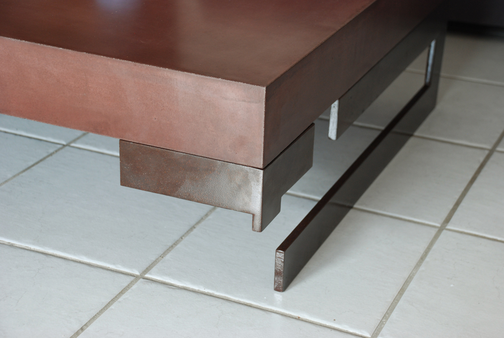 Matériaux : piètement acier, plateau béton haute performance BTHP