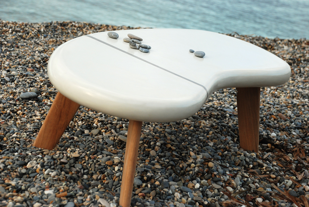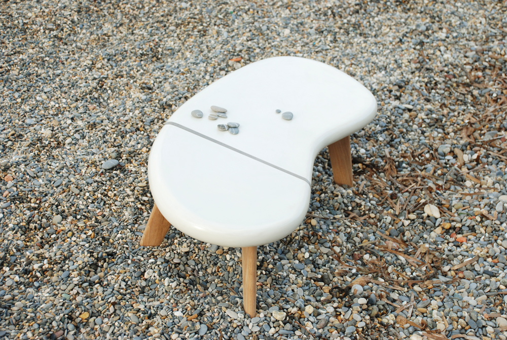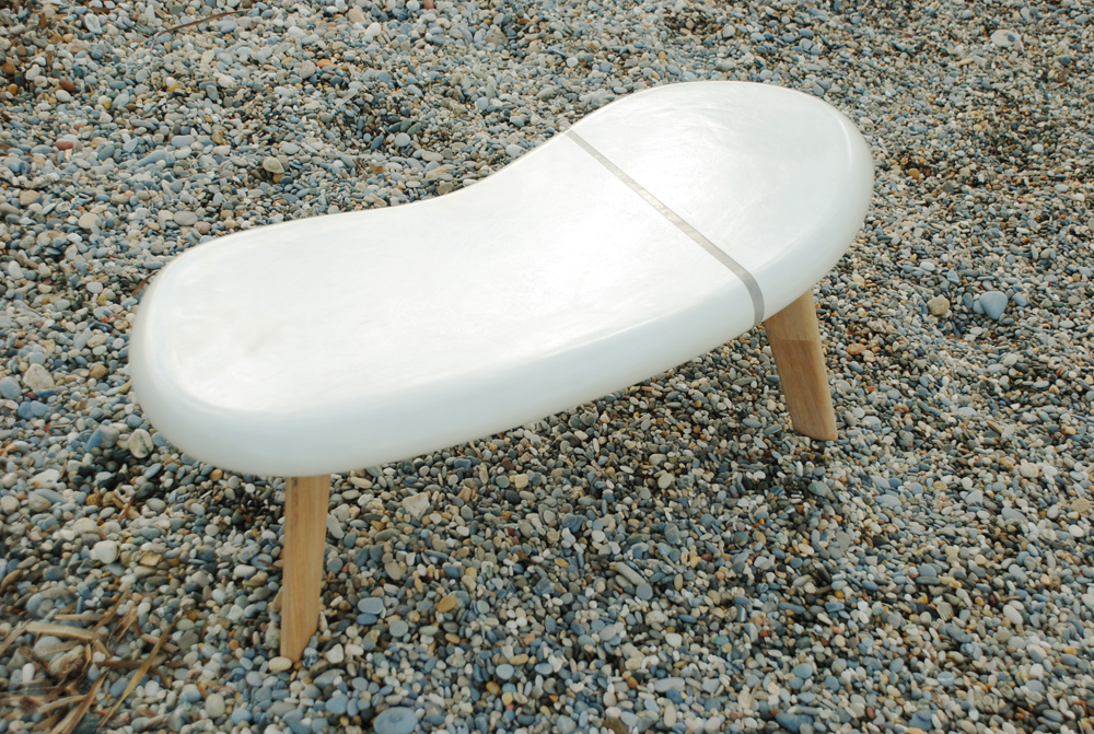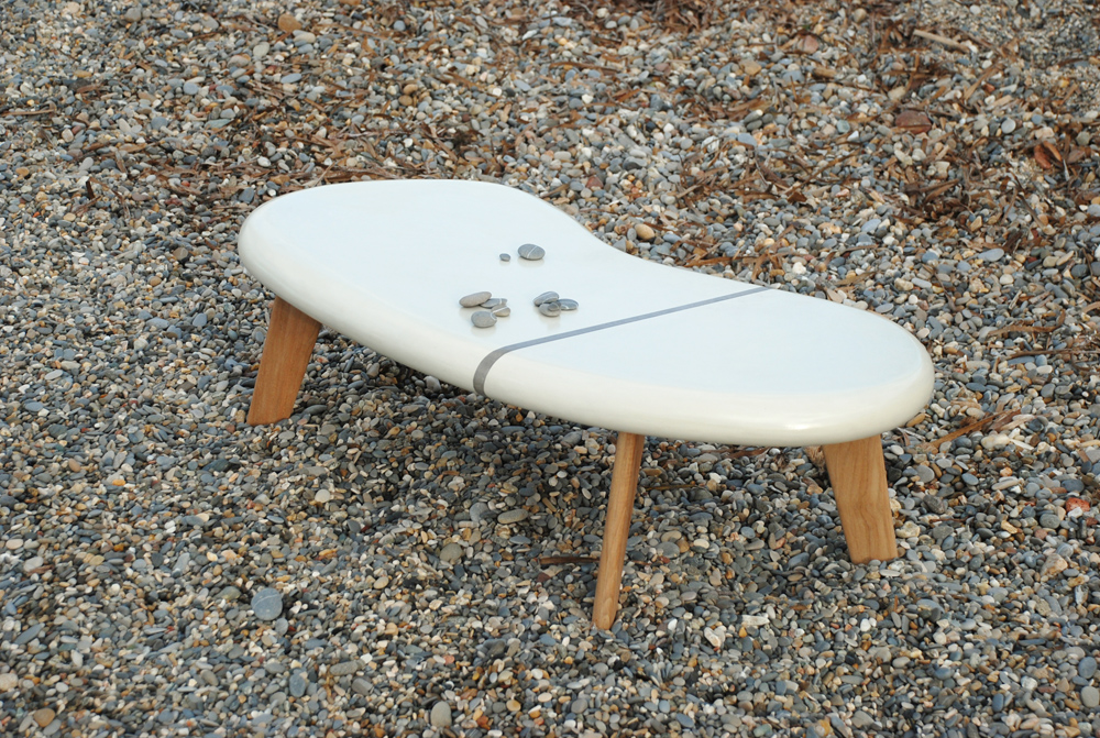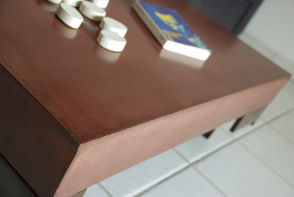 Déscription : Table basse en mdf recouvert de béton ciré au design unique en forme de galet