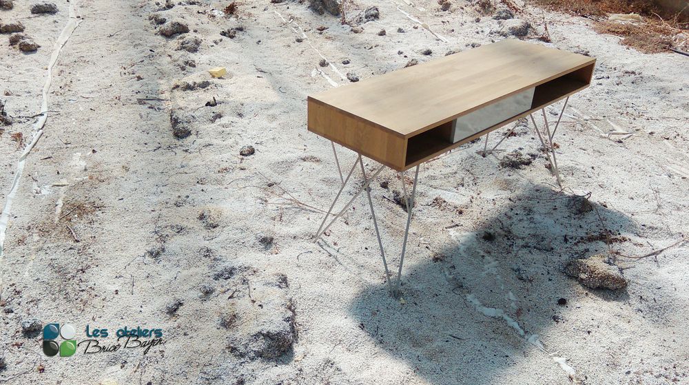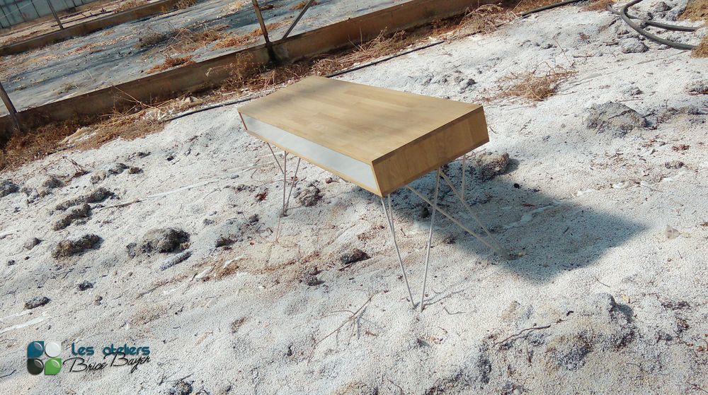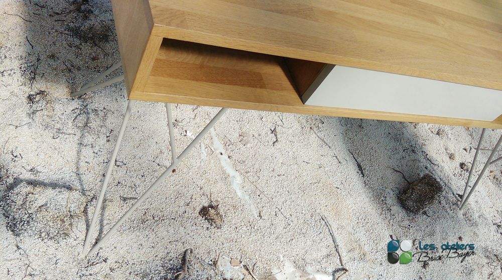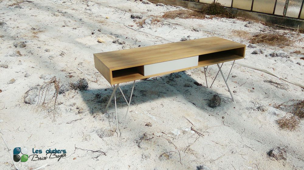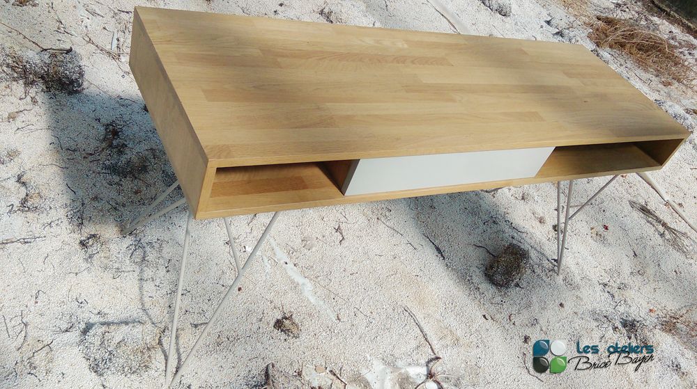 Description : Plateau en chêne massif, Piétement en acier thermo-laqué.Un grand tiroir décantré facade laquée. Ligne épurée, design contemporain d'inspiration Scandinave.