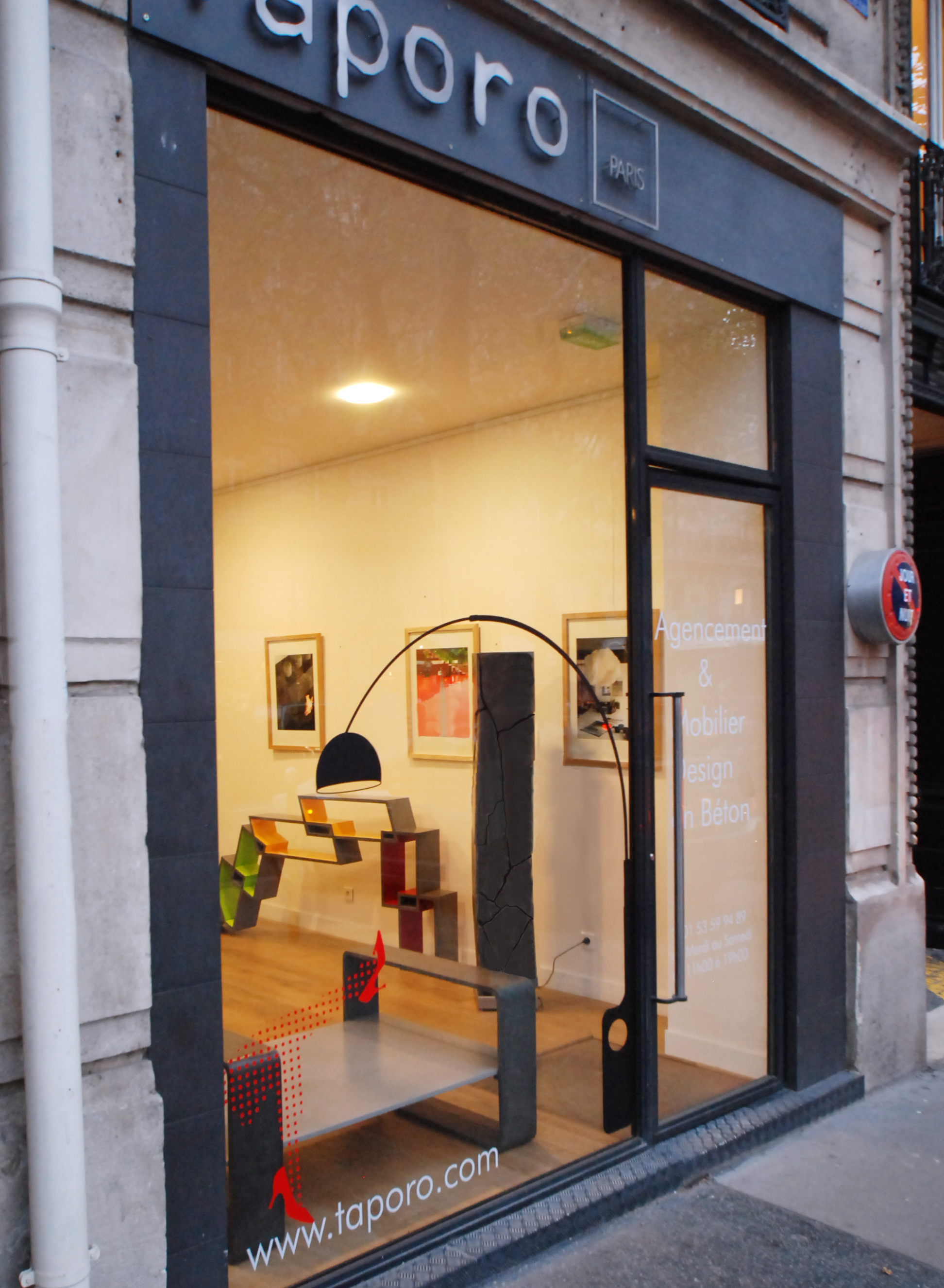 Inspirée des maillages des totems en béton, il s’agit d’une collection originale de banc, tabouret, table et console.