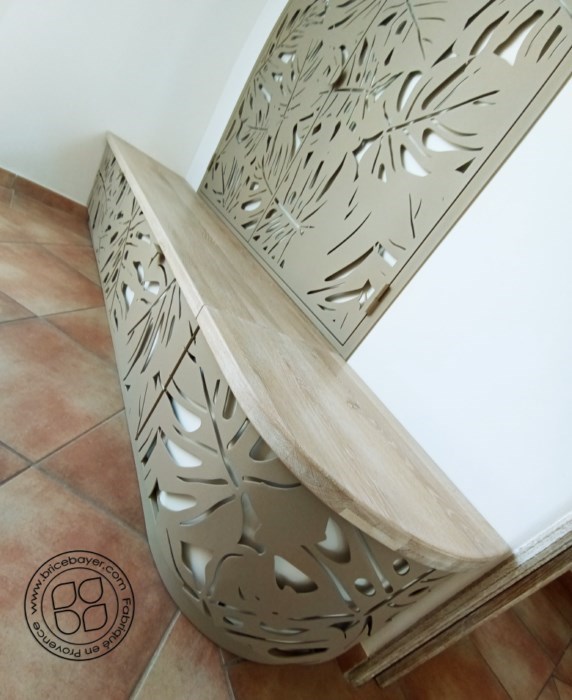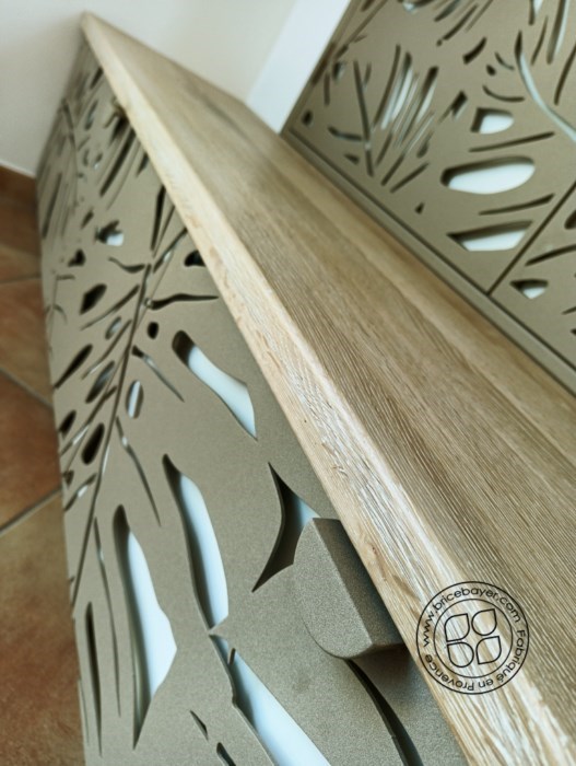 Le design floral fait écho à celui décliné sur les marches d'un escalier en acier conçu antérieurement.